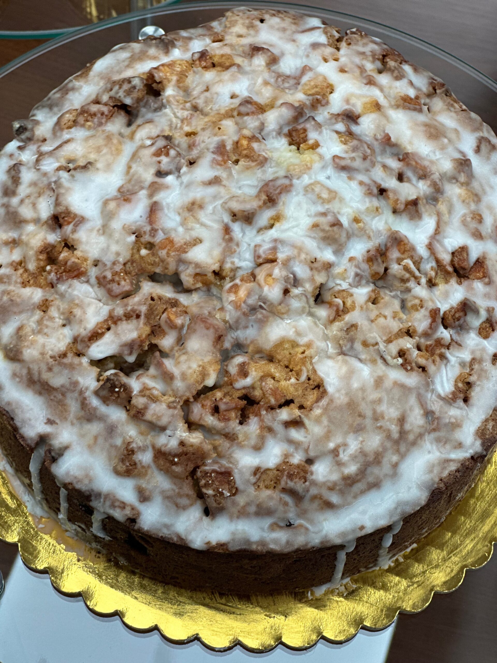 A blend Between bread and a cake. It’s soft sweet crumb with crisp apples in the midst.
