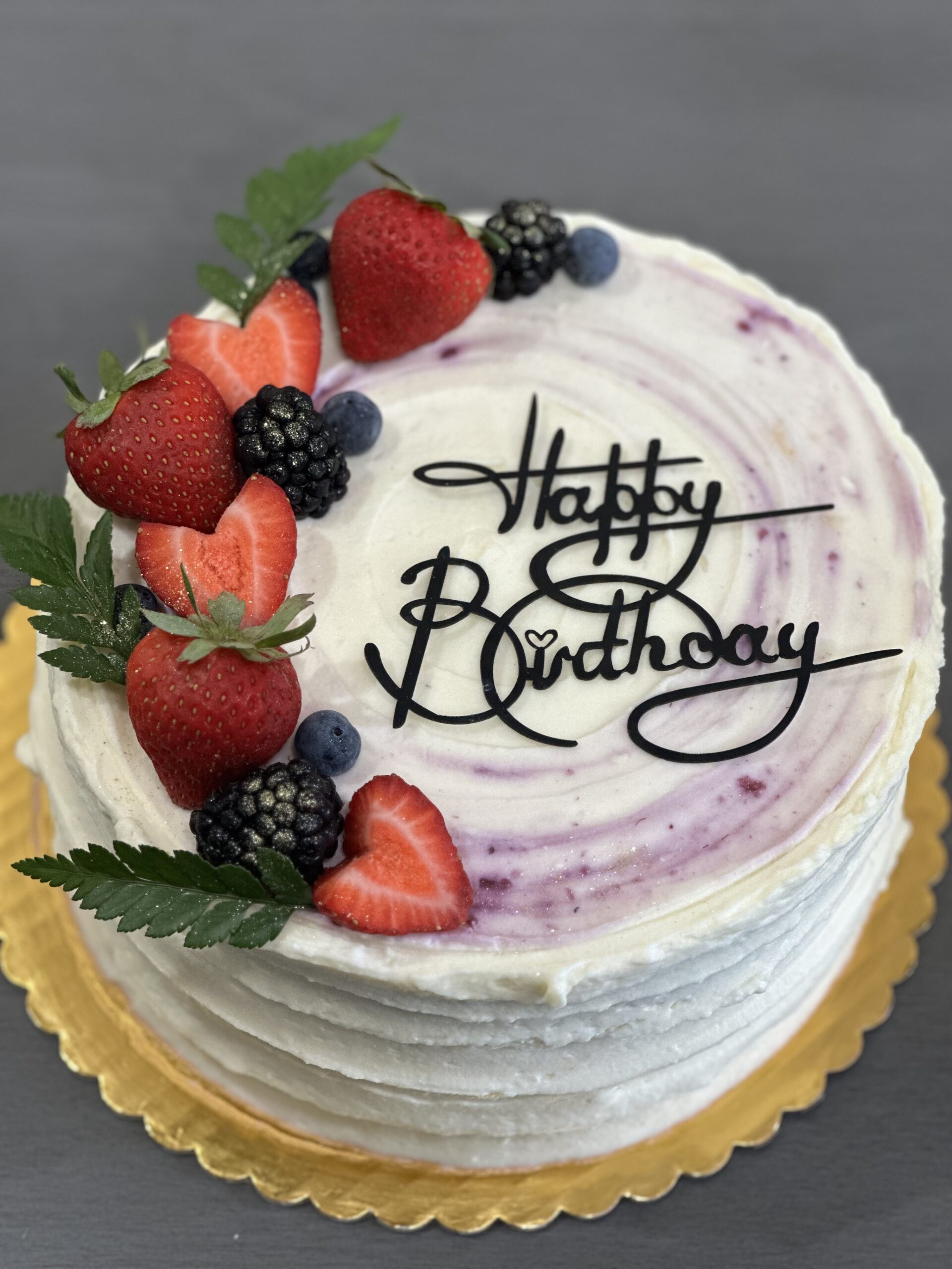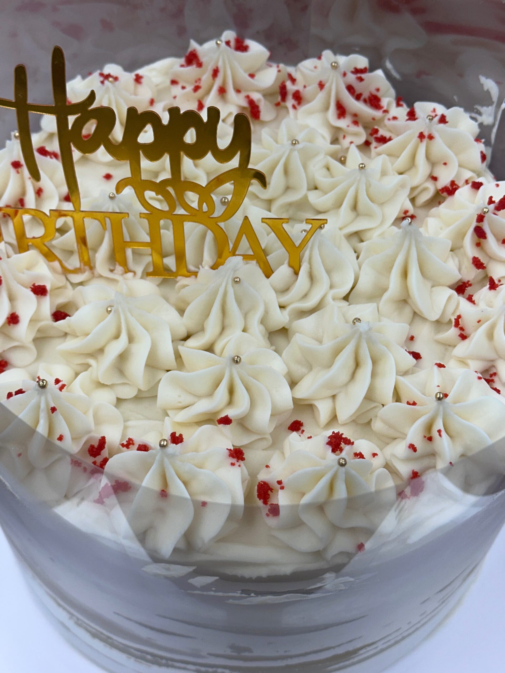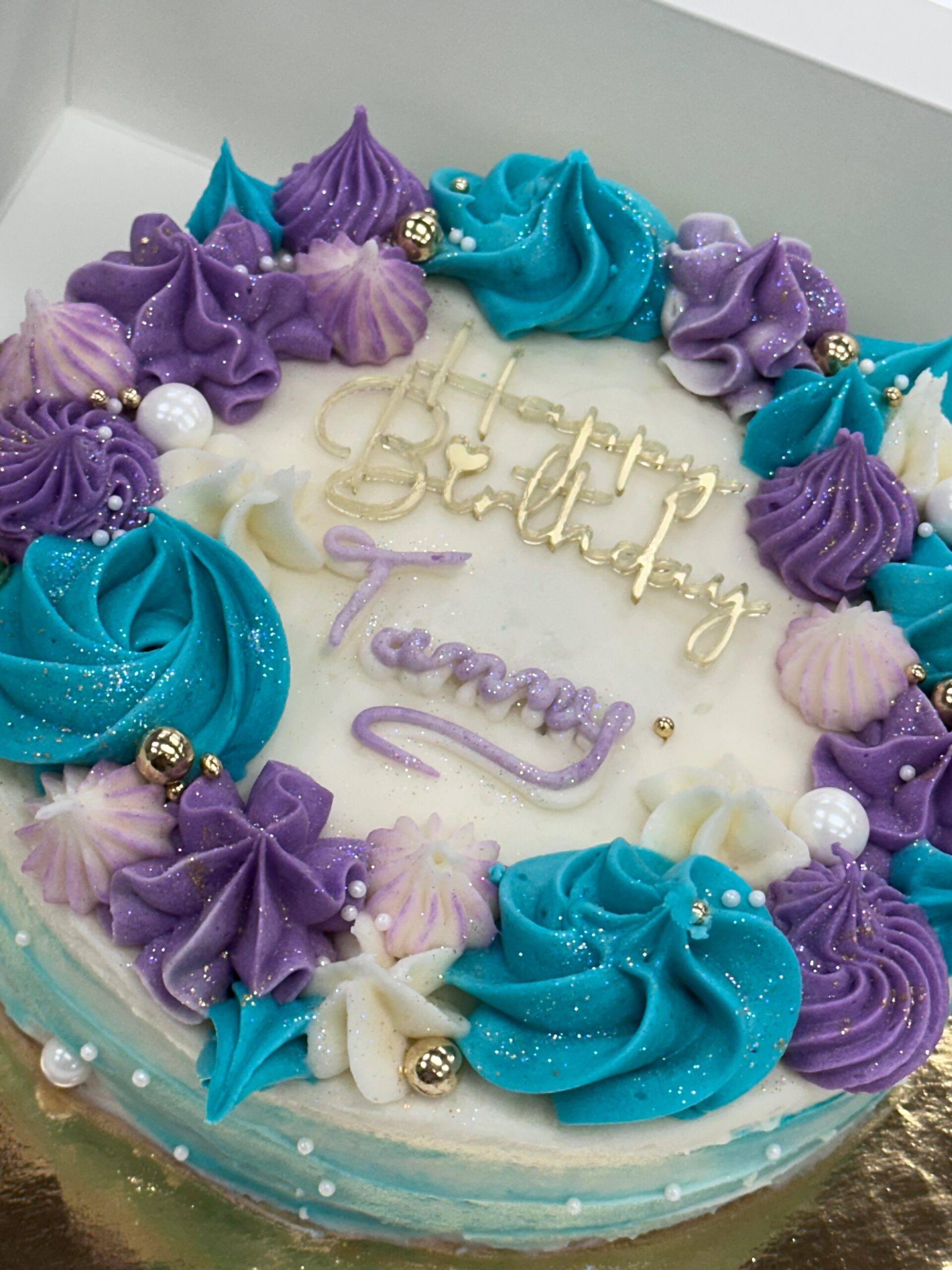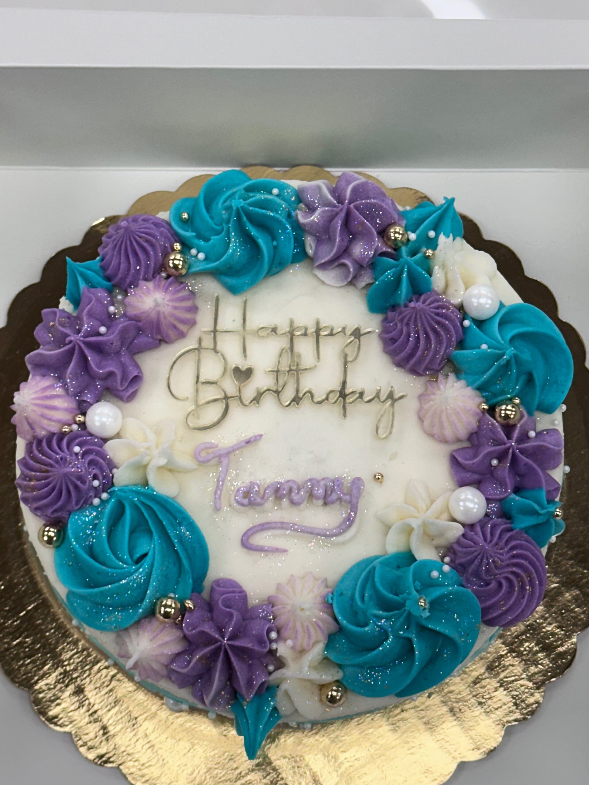 Tell us your 1. Flavor cake 2. Flavor frosting 3. size(4″,6″,8″,9″) 4. # of layers and any designs you’d like and we’ll make it happen.