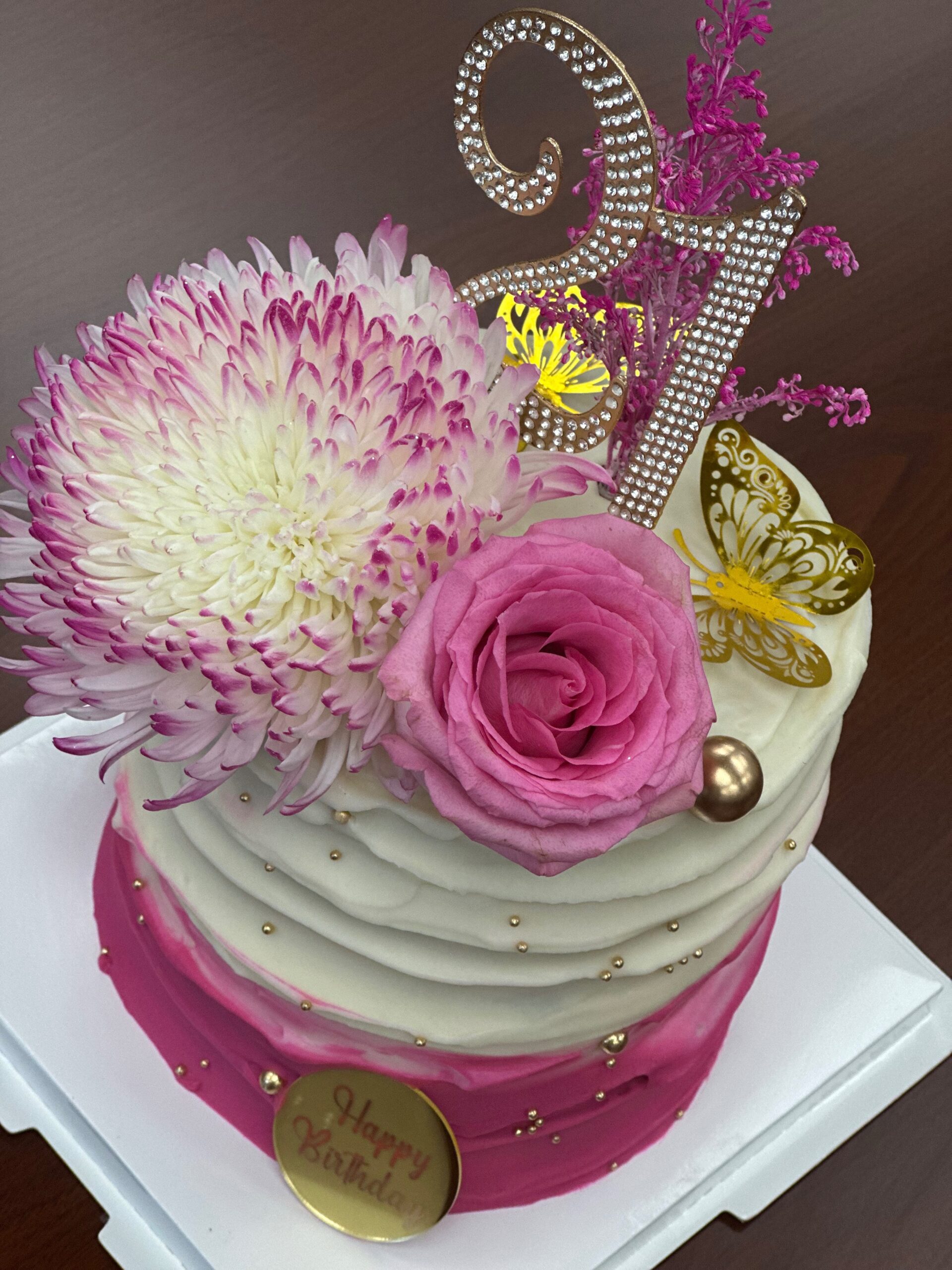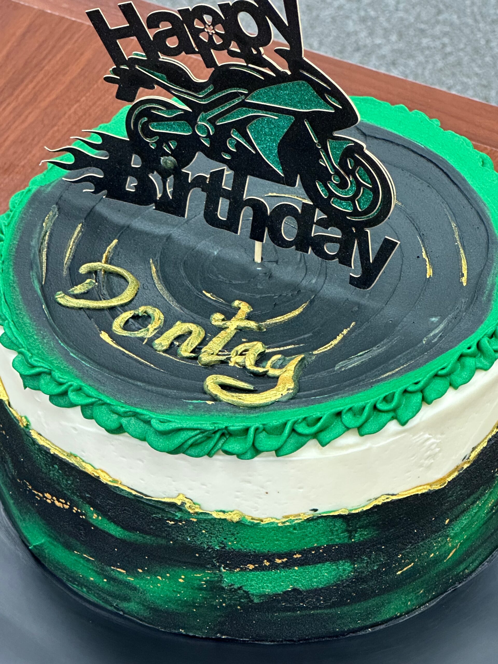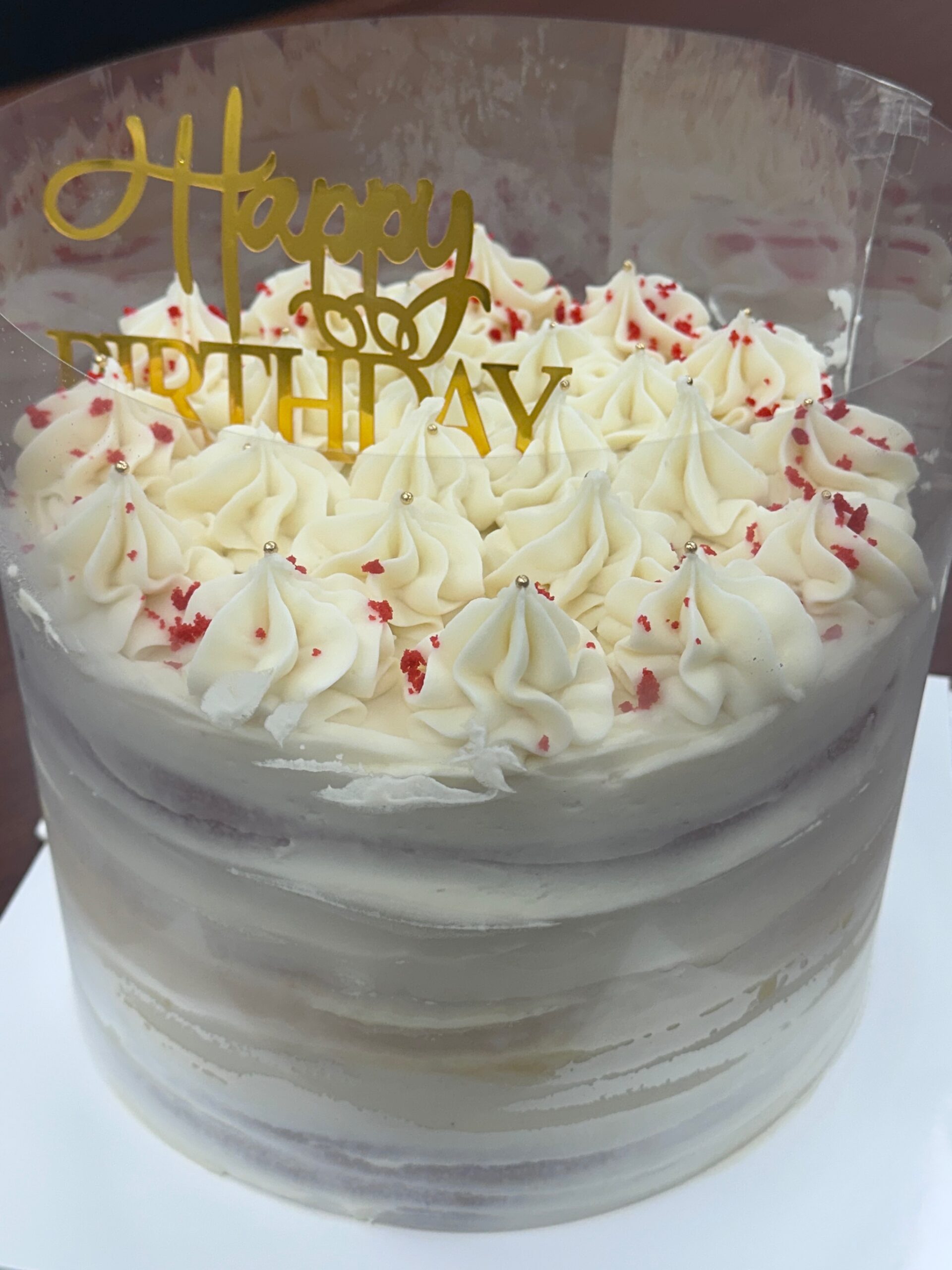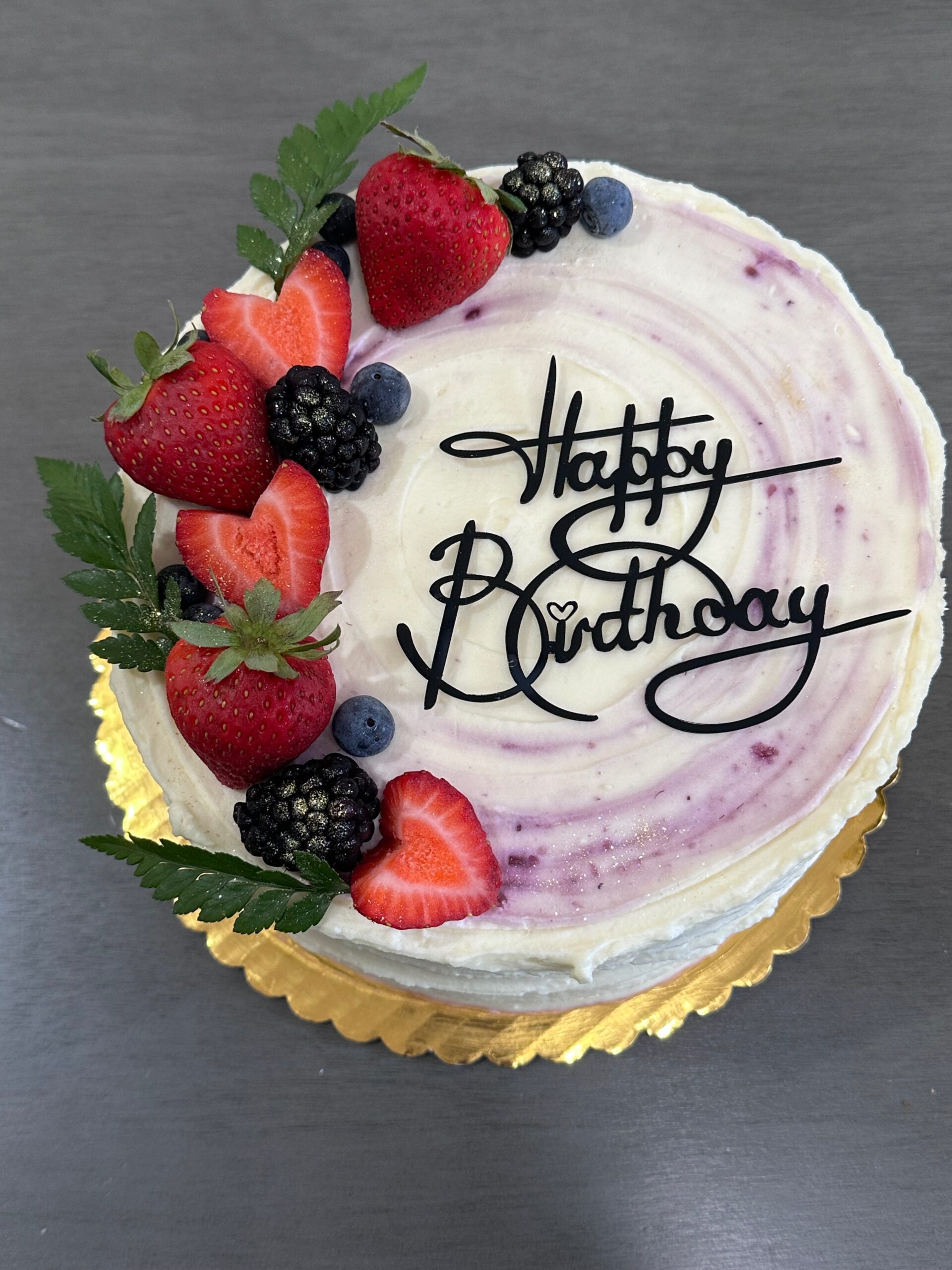Tell us your 1. Flavor cake 2. Flavor frosting 3. size(4″,6″,8″,9″) 4. # of layers and any designs you’d like and we’ll make it happen.