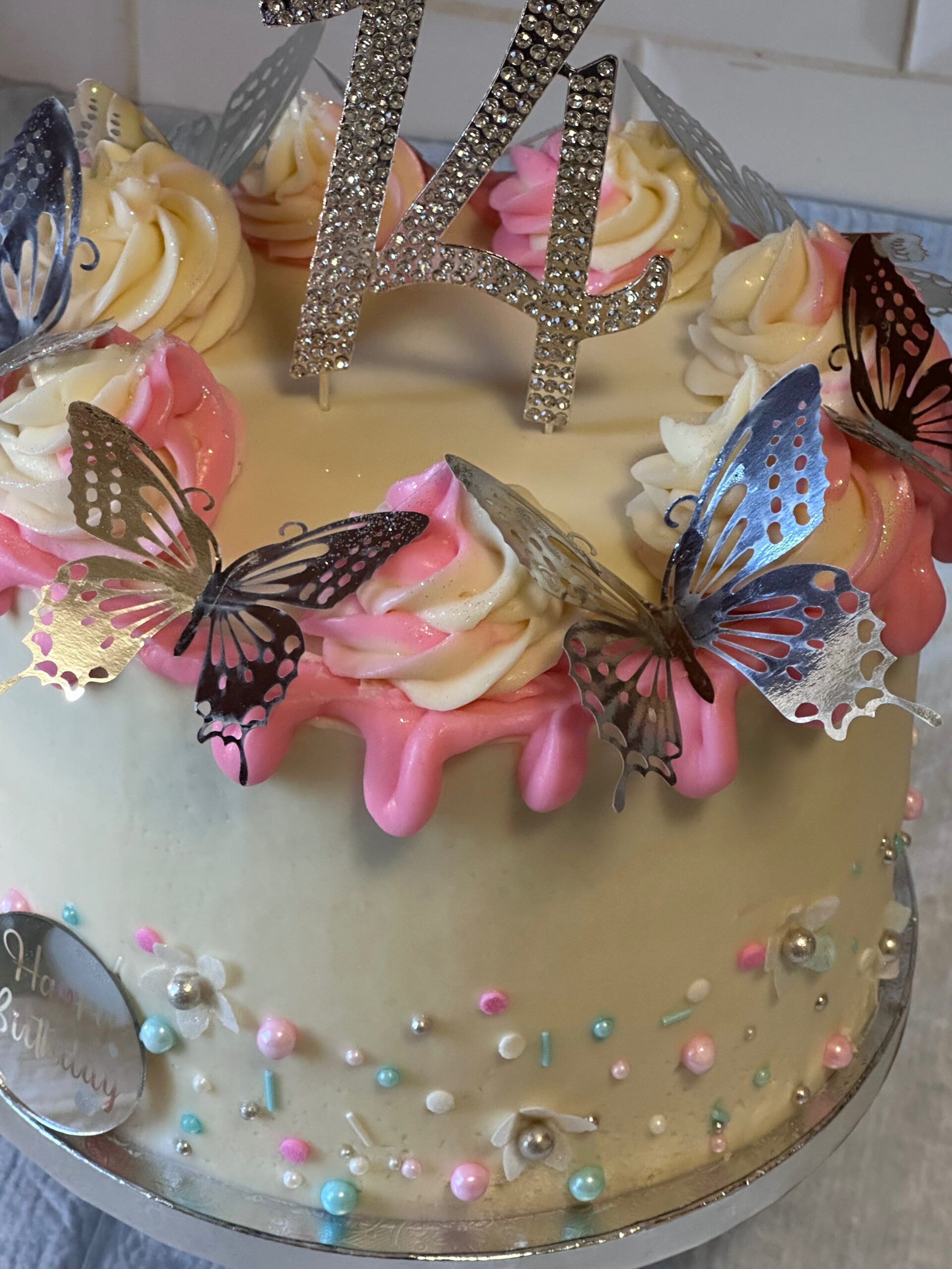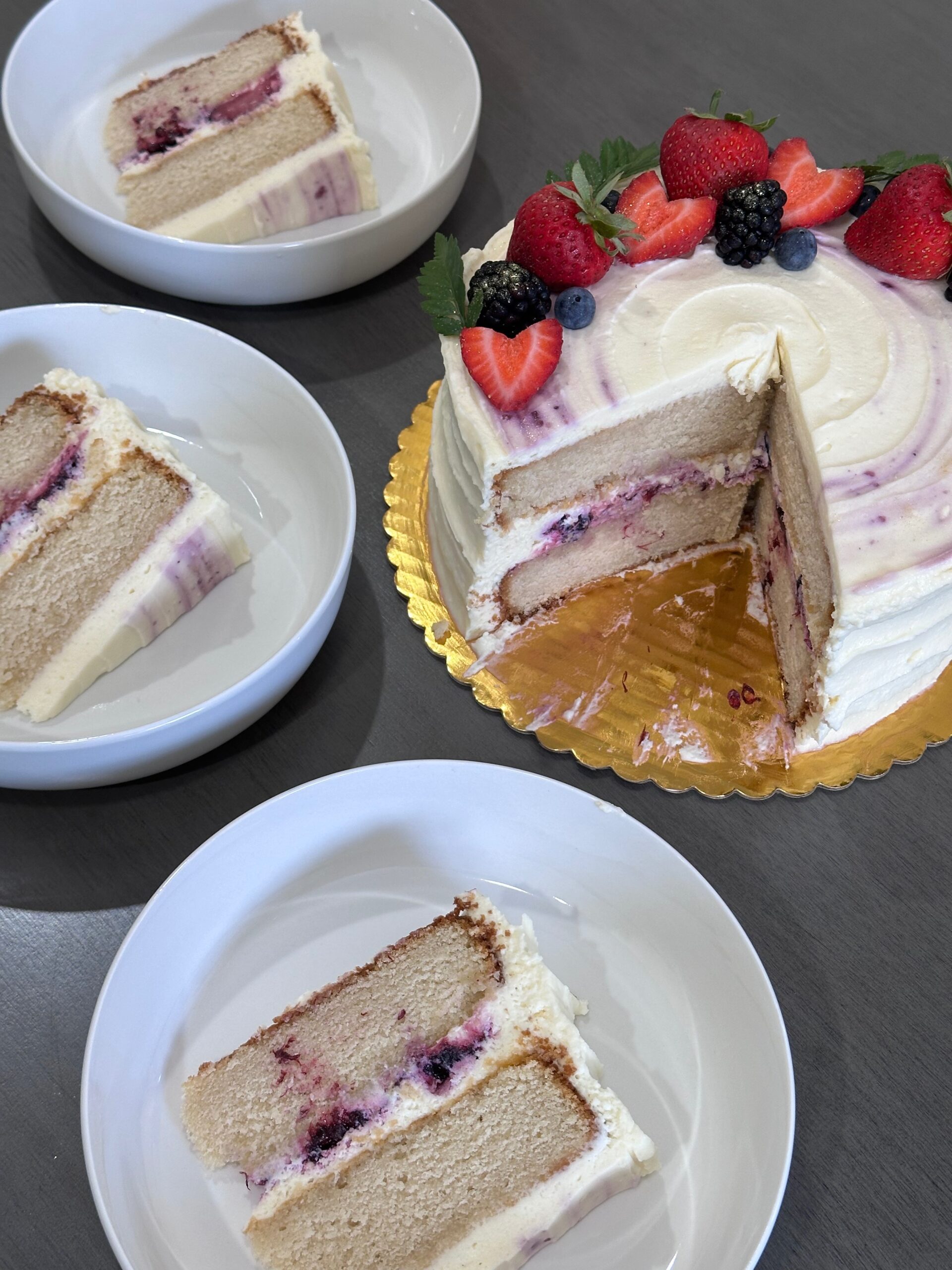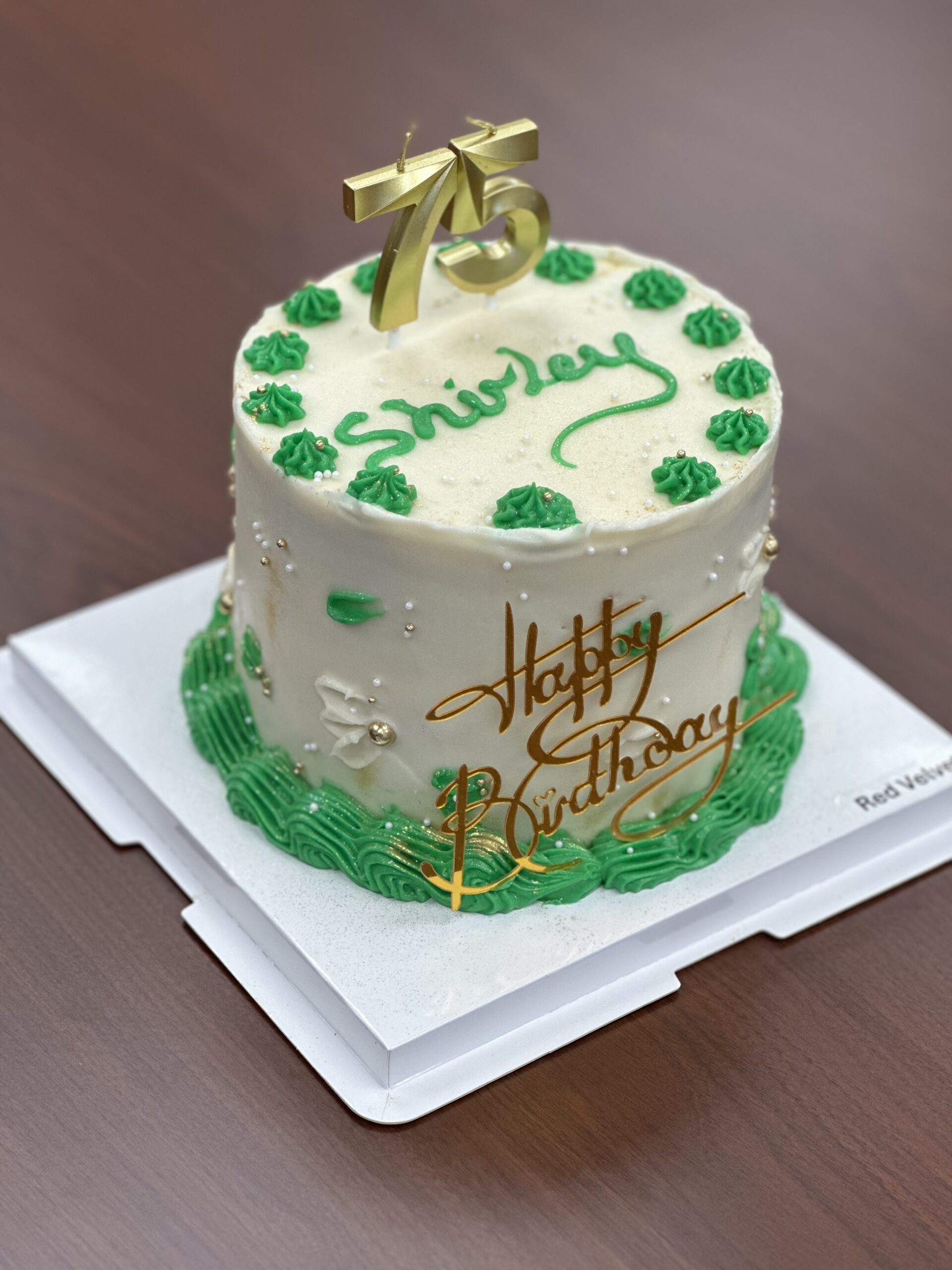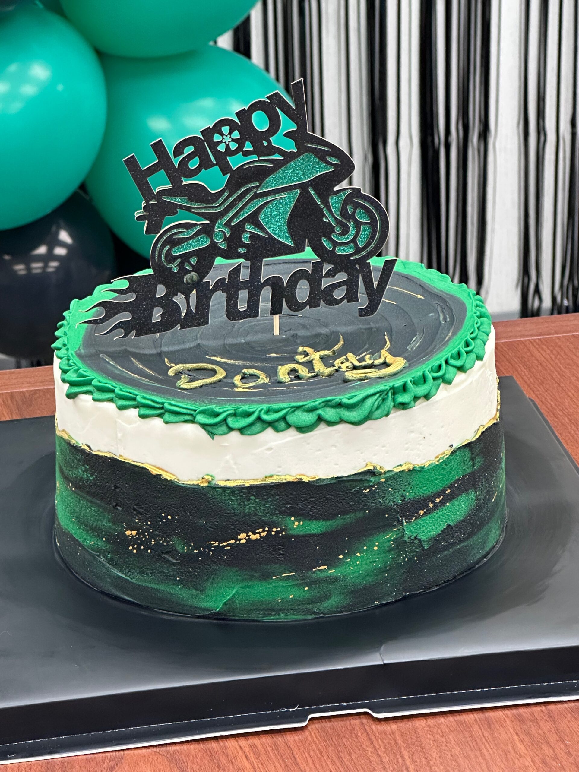 Tell us your 1. Flavor cake 2. Flavor frosting 3. size(4″,6″,8″,9″) 4. # of layers and any designs you’d like and we’ll make it happen.